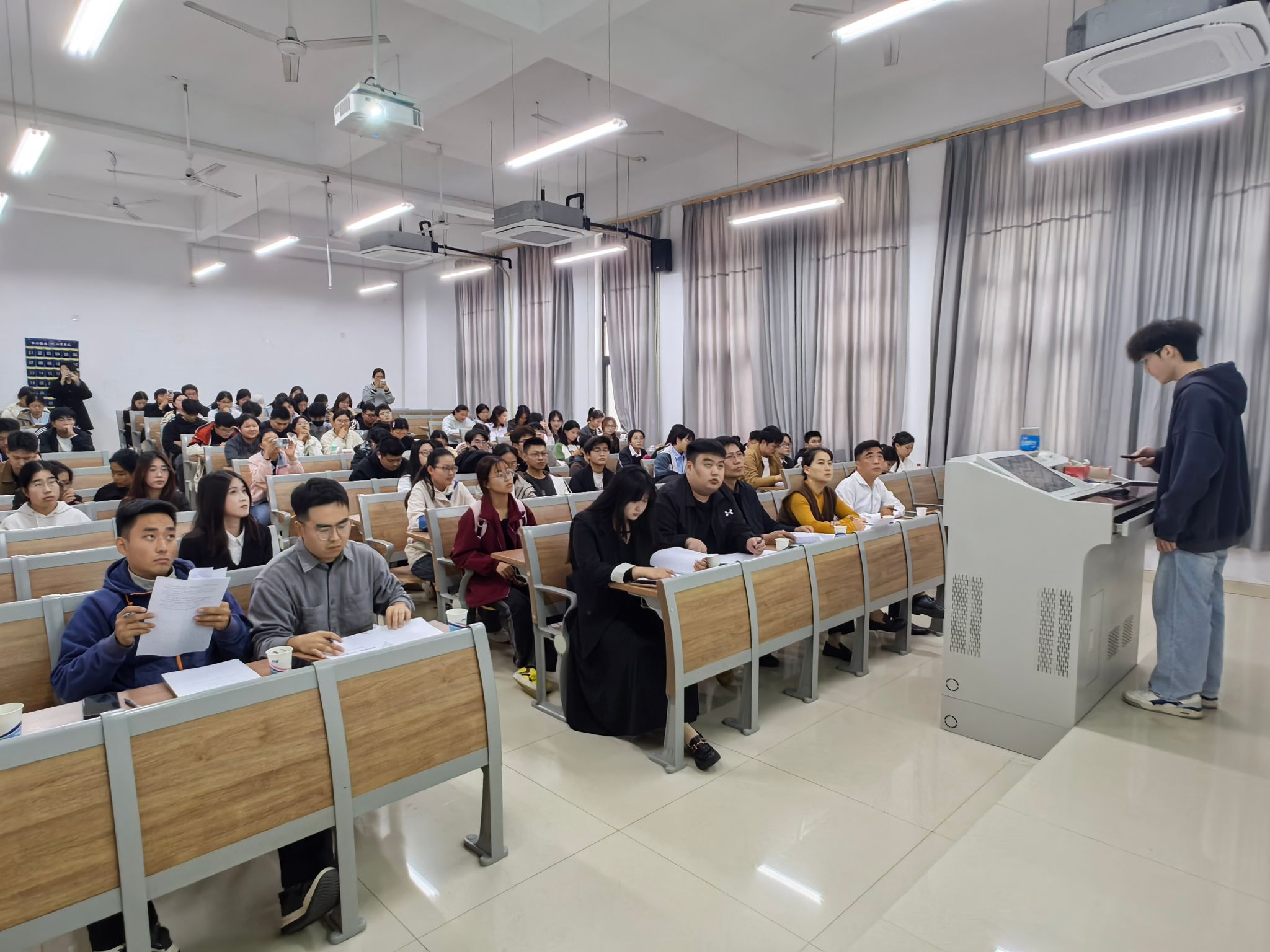 大赛自启动以来,吸引了各年级学生的广泛关注,大家参与热情高涨。在院级决赛现场,选手们依次登台,围绕个人职业目标、实践路径及能力提升方向展开汇报展示。他们立足国家战略需求,结合所学专业特色,充分挖掘自身优势,呈现出涵盖乡村教师、统计分析师、量化分析师、证券分析师、AI 算法工程师等多个领域的职业规划方案。比赛过程中,选手们逻辑清晰、沉着应答,不仅系统分析了个人性格特质、专业能力与职业方向的匹配度,还结合行业趋势与市场需求,制定了切实可行的发展规划。最后,双创导师申祥结合自身经验,对选手表现进行了系统点评。同时,他也指出,职业规划不仅是明确目标,更是一个动态调整、持续优化的过程。他鼓励同学们在实践中不断检验和修正职业路径,增强求职实战能力与岗位适应力。
