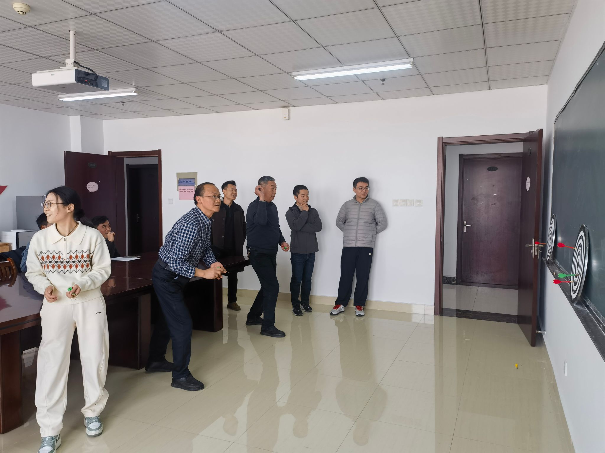 12月17日下午,为丰富教职工的业余文化生活,缓解工作压力,增进教职工之间的交流,太阳成集团tyc234cc分工会在行知楼1108开展了“趣味投飞镖”活动。学院全体教职工积极参与,在轻松愉快的氛围中享受运动乐趣。